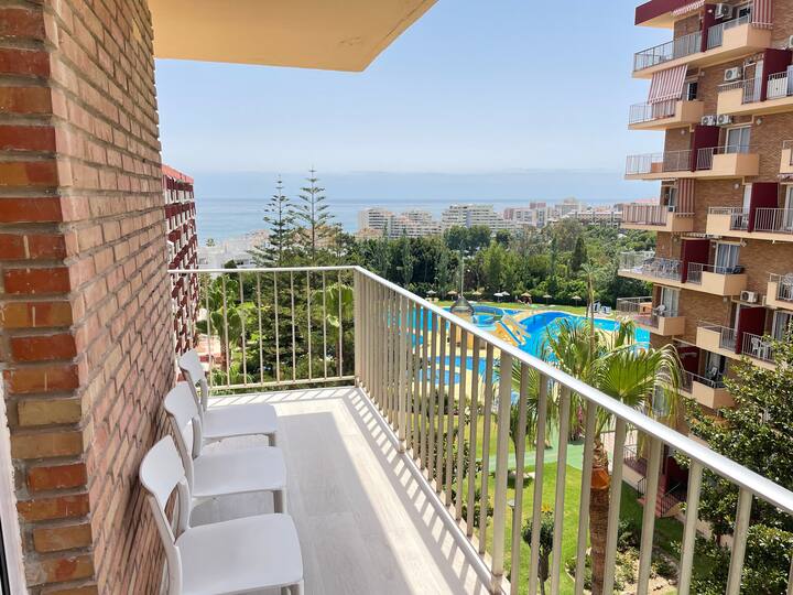 A louer du 01092021 au 30062022 bel appartement avec vue mer en 2ème ligne de plage à Benalmadena. Bel appartement au sud de L ESPAGNE dans complexe privé en location a 200m de la plage et a seulement 1km.